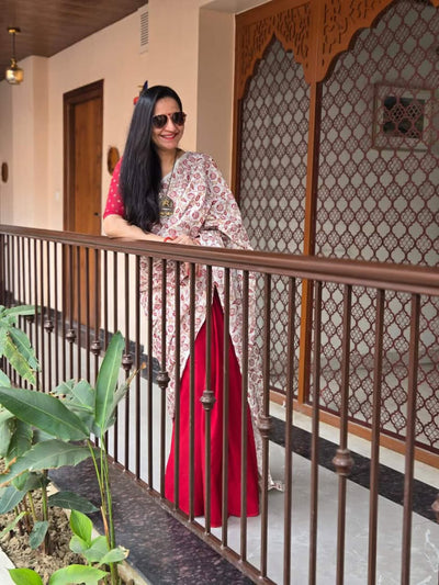 At Brij Bari, we embrace the traditional craft of hand block printing, where intricate designs are carved onto wooden blocks and meticulously printed onto fabric. This age-old technique allows us to create unique, vibrant sarees that blend timeless artistry with contemporary designs.