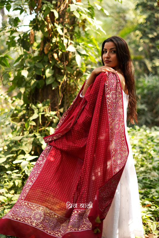 MADHVI- Handcrafted Mulmul Dupatta