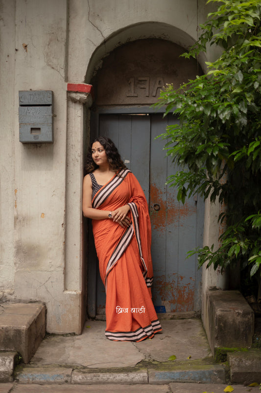 ANINDITA (Rust)- Handcrafted Mulmul Saree
